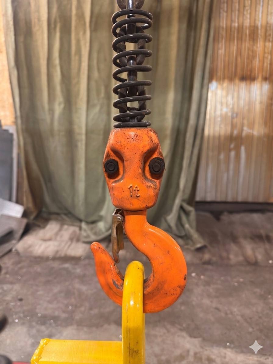Безопасный крюк: Кованый стальной крюк оснащен подпружиненной защелкой и защитной муфтой у основания.